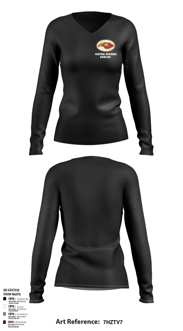Central Regional High School Bowling 42780139 Women's Long Sleeve V-neck Shirt - 2