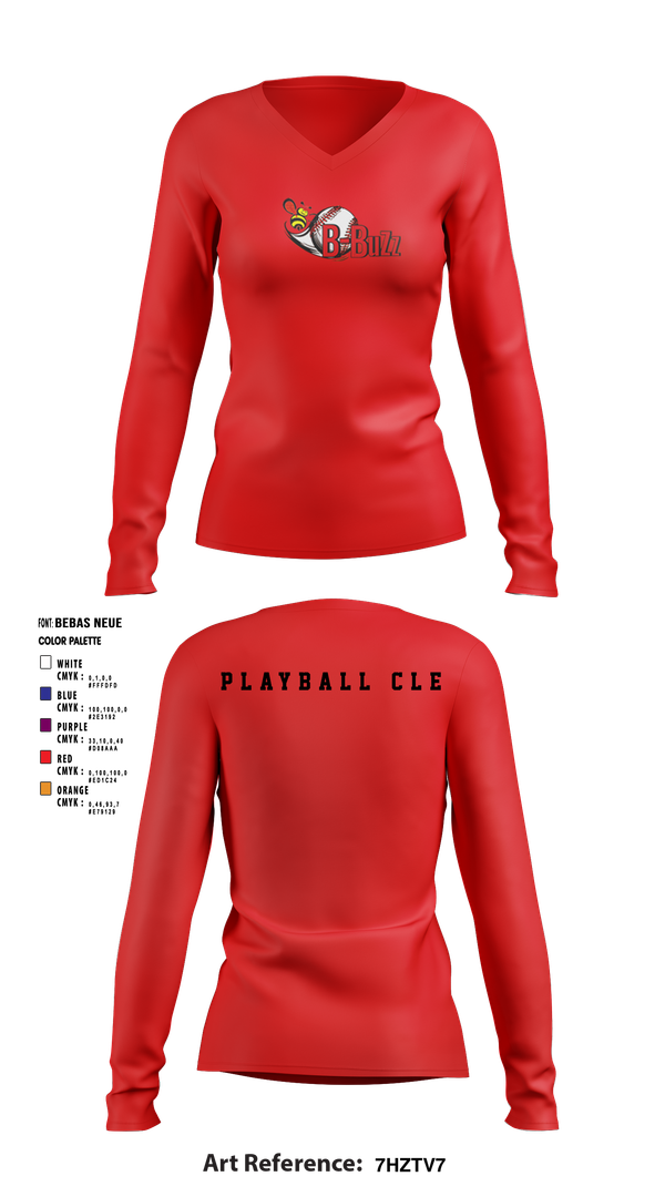 B Buzz Baseball League 75019054 Women's Long Sleeve V-neck Shirt - 5