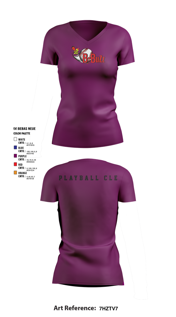 B Buzz Baseball League 75019054 Women's Short Sleeve V-neck Shirt - 3