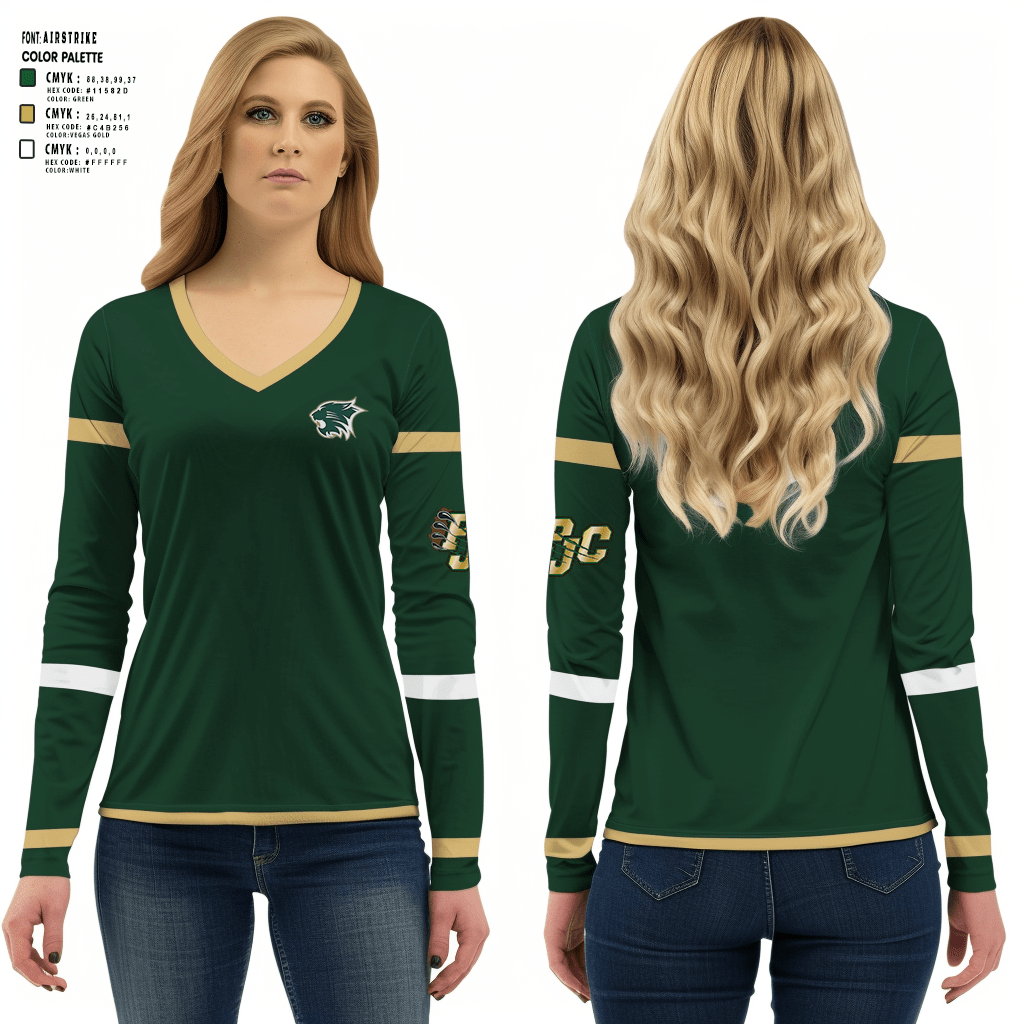 PLAINFIELD JUNIOR CATS FOOTBALL/CHEER Women's Long Sleeve V-neck Shirt -2