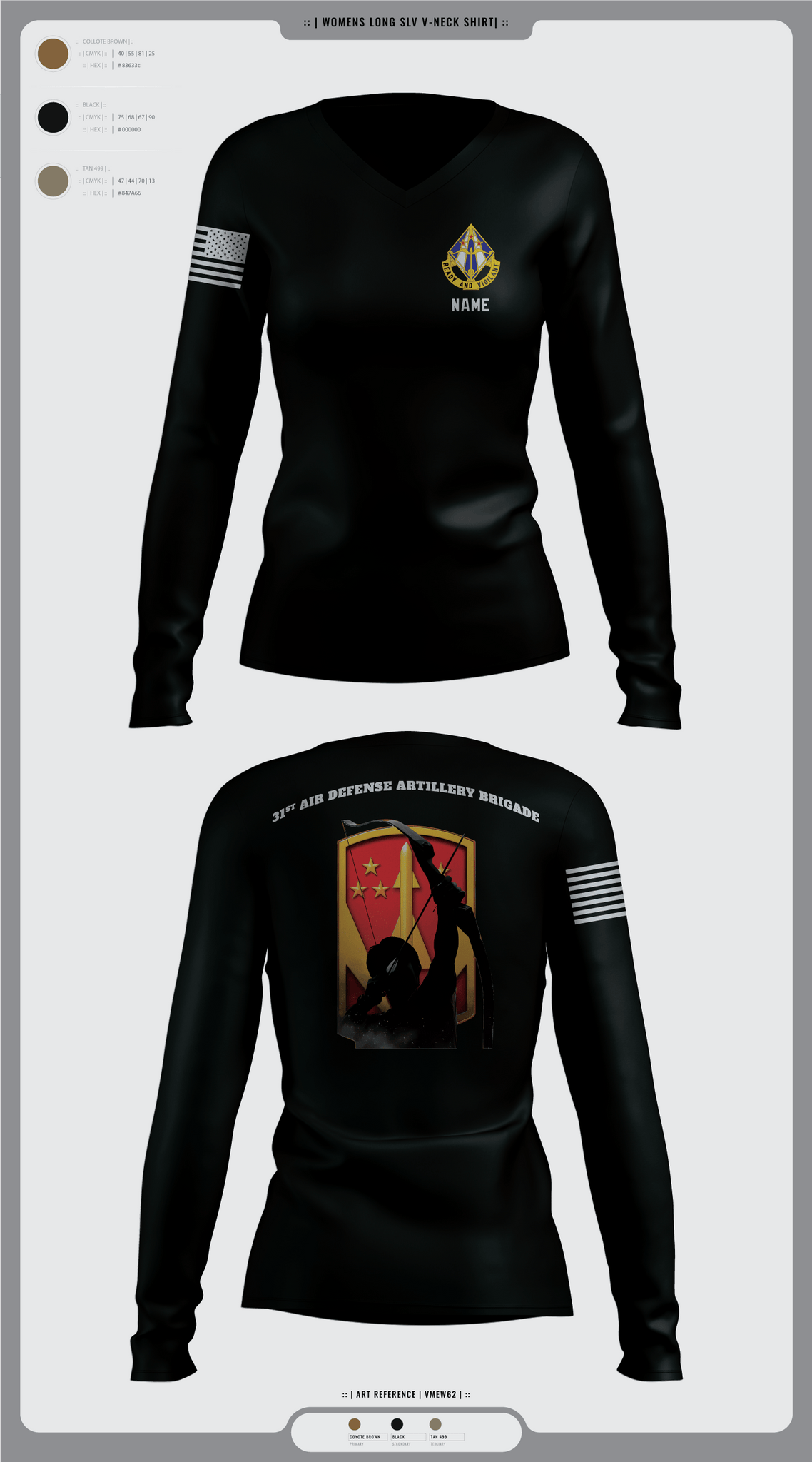 31st Air Defense Artillery Brigade 63211625 Women's Long Sleeve V-neck Shirt -1 11