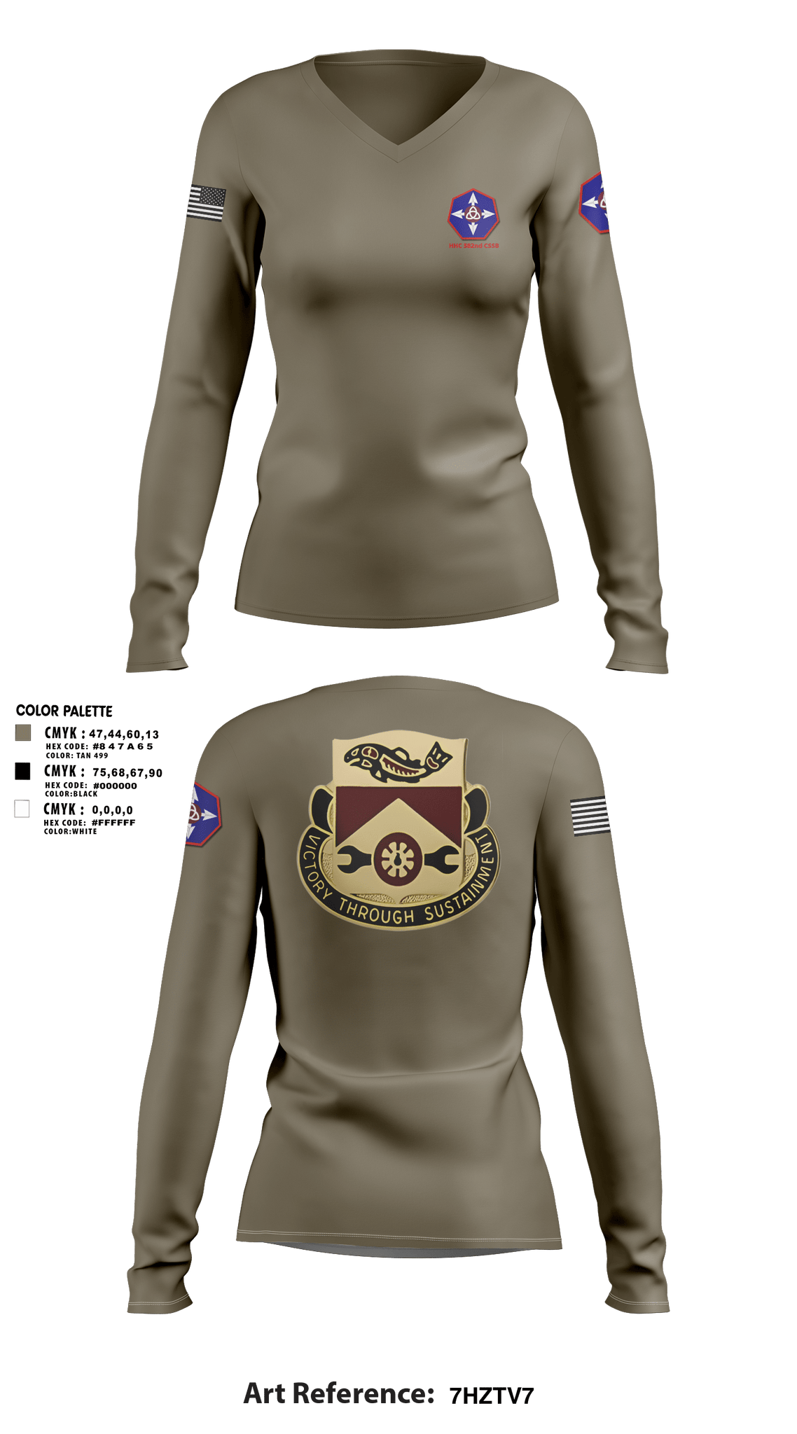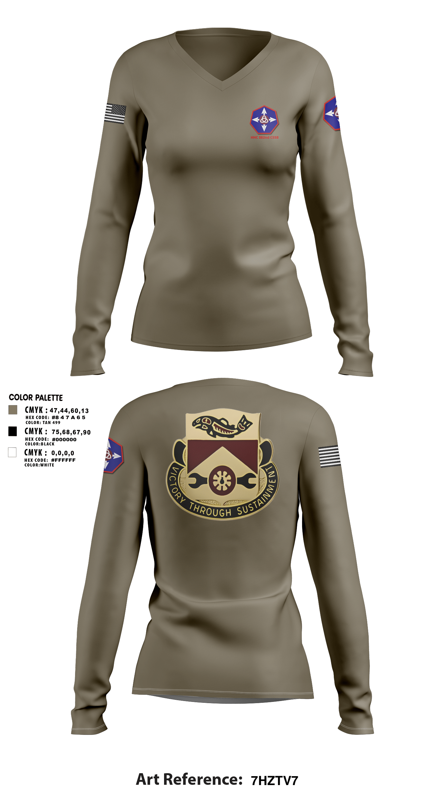 HHC 382nd CSSB 92293561 Women's Long Sleeve V-neck Shirt - 1